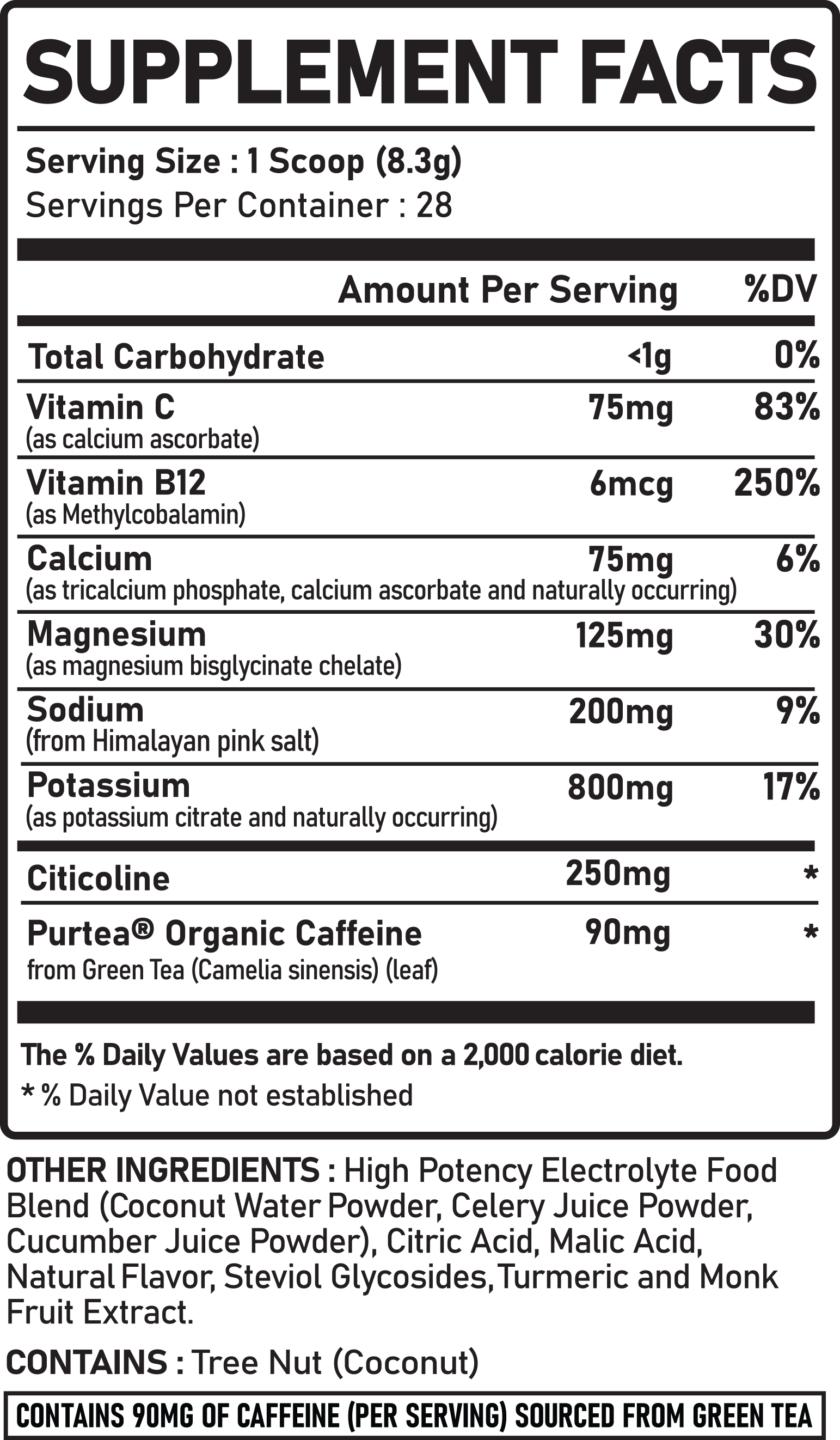 - Brain-Boosting Nutrients: Formulated with a blend of clinically studied Citicoline, 90mg of natural caffeine from PurTea Green Tea Extract, and B12 to support cognitive function, memory, and focus.